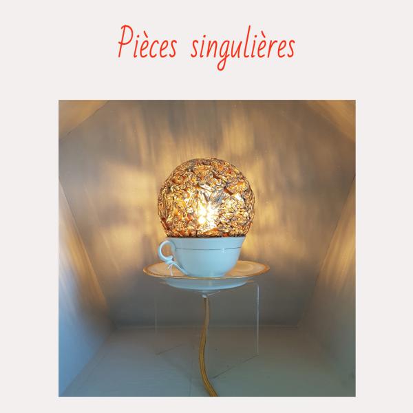 fleur et boule en dentelle de carton tasse de thé avec boule en dentelle de carton gros flacon d'eau sauvage de dior transformé en lampe avec boule en dentelle de carton Bouteille d'alcool surmontée d'une boule en dentelle de carton tasse de thé avec boule en dentelle de carton - éco-lodie