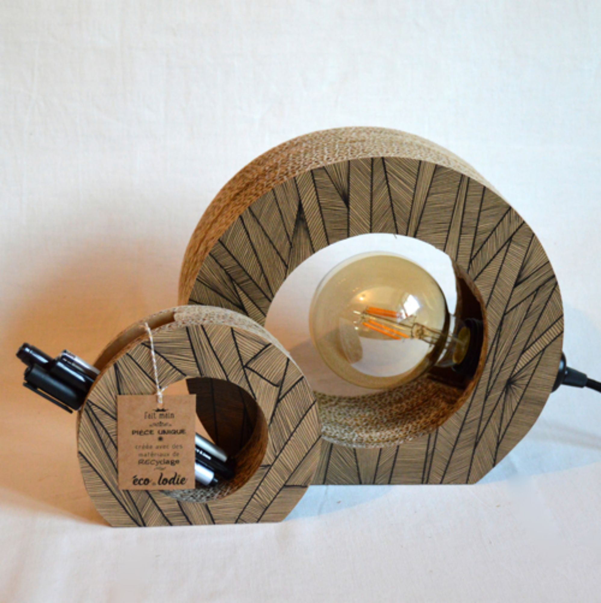De part sa structure alvéolaire, nid d'abeilles, cannelé, le carton permet la fabrication de meubles solides, durables, originaux, uniques. Le carton offre une multitude de finitions ce qui lui permet de s'adapter à votre décoration ou bien d'en créer une personnelle. Il existe toute sorte de créations en carton : mobilier en carton, table, petite table, rangement, table de chevet, lampe de chevet, commode, chaise, fauteuil en carton, fauteuil club, étagères, bureau, luminaires en carton à suspendre ou à poser petit meuble, grand meuble, chiffonnier ... J'ai fait des plats et objets de décoration, des boules en dentelle de carton et m'oriente davantage vers le mobilier design et luminaires design.